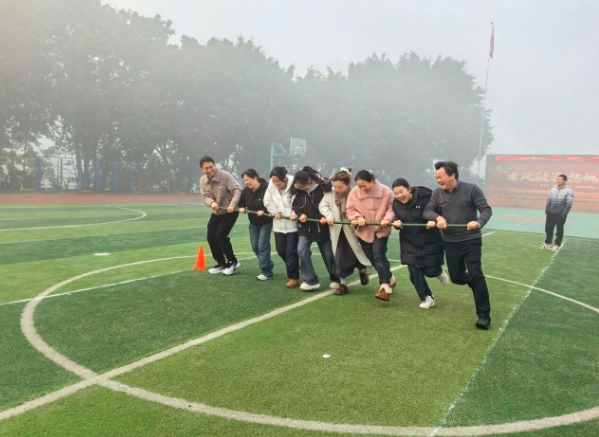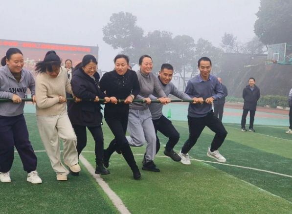 为共建健康中国,积极推进全民健身运动,践行“以人文本、智雅人生”办学理念,增强学校集体凝聚力、战斗力,丰富学校教职员工课余生活,展示全体教职工团结奋进的昂扬斗志和积极向上的应有风采。2026年1月17日,宜宾市翠屏区白花镇孔滩中心学校党总支、校行政、工会等群团组织联袂举办了主题为“趣动身心,乐享工作”的迎新春第二届教职工趣味运动会暨迎新年活动。来自全域所辖校本部、小学校区、白龙校区和玉家校区共四个校区的180余名教职工参加了本届运动会,活动由学校工会主席江庶波主持。