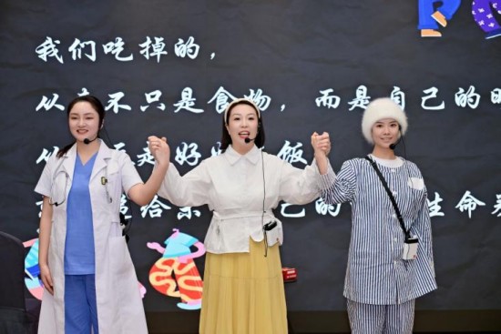 比赛中,大竹县人民医院科普团队营养专业支持护理小组现场表演了参赛作品《“吃掉”的明天》,聚焦不良饮食习惯与胃癌等癌症的关联,用舞台剧的表现形式向大众展现健康和疾病两种生存状态,引用世界癌症研究基金会数据指出30%-50%癌症可通过饮食预防,并普及了“123健康饮食法”,告诫人民群众切勿贪图一时的嘴上满足而“吃掉”自己的美好未来,呼吁人们在日常生活中注意健康饮食,传递“厨房是最好药房”的健康理念。