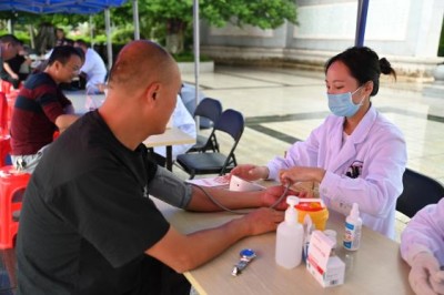 9月28日上午,心内科党支部在白塔公园开展了一场以"律动不息"为主题的义诊活动。