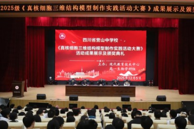 当课本上平面的细胞图,变成手中立体的模型;当抽象的生物知识,化为可触可感的创造——科学教育,正在营山中学的校园里生动发生。12月5日下午,营山中学高2025级《真核细胞三维结构模型制作大赛》优秀作品展示与颁奖仪式在科教楼前及报告厅顺利举行。这不仅是一次学科实践的成果展,更是一场科学与艺术交织的青春盛会。