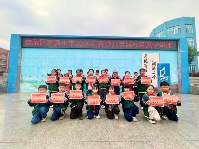 今年的春天来得特别早,特别快。你看,乡村已满是金黄的菜花,粉红的桃花,雪白的梨花......坐落在青山绿水间的李渡小学校园也已经是繁花似锦、春意盎然。在这春光灿烂的日子里,在这万象更新的日子里,3月6日上午李渡小学全体师生齐聚一堂,隆重召开2026春开学典礼。乡村三月春意浓,策马扬鞭正当时,李小人以饱满的精神、激昂的斗志正迎接着新学期的到来。