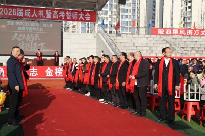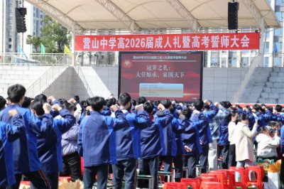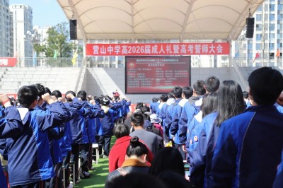 春回大地,惠风和畅,万物竞发。2026年3月10日,营山中学芙蓉校区运动场内旌旗招展,气氛庄重而热烈,高三年级成人礼暨高考誓师大会在此隆重举行。本次活动以“冠笄之礼,大任始承,家国天下”为主题,高三年级全体学生、学生家长、班主任及科任教师齐聚一堂,共同见证学子迈入成年的神圣时刻,正式吹响高考最后89天冲刺的奋进号角。