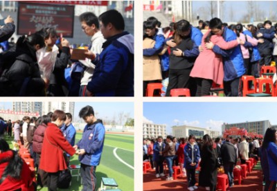 在主讲嘉宾徐海涛老师的引导下,大会进入温情互动环节。班主任老师们移步队伍前方,全体学子集体向老师行鞠躬礼致谢,随后纷纷上前与老师拥抱、击掌。掌心相触的瞬间,传递的是师生间的深厚情谊,汇聚的是携手冲刺的奋进力量。在家长与学生的互动环节中,学子们向父母倾诉心声,表达理解与感恩,隔阂在交流中消融,情感在拥抱中升华。