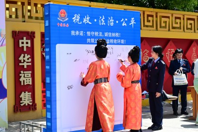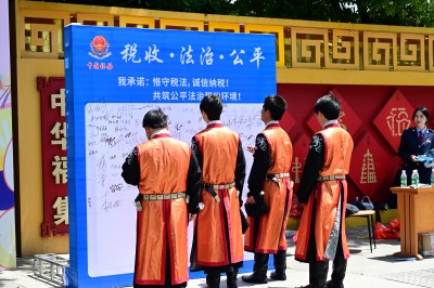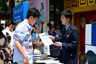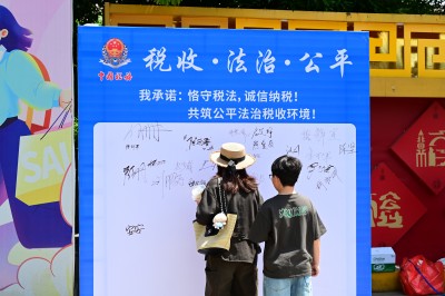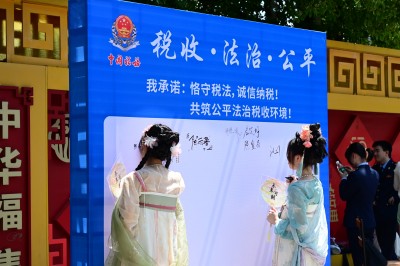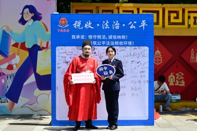 张飞庙前,“税月留影”主题打卡点与诚信纳税签名墙成为了游客们的热门打卡地。不少身着汉服的游客手持写有简洁醒目税法宣传标语的牌子,在背景板前拍照留念,与古城的历史环境自然相融;一旁的诚信纳税签名墙前,过往游客与商户纷纷驻足,主动提笔签下自己的名字,以手写签名的方式践行诚信纳税承诺,传递依法纳税正能量。多名税务志愿者在打卡点与签名墙周边为游客提供贴心服务,一边讲解个税汇算、小微企业税费优惠等与群众息息相关的税法小知识,一边为参与打卡、签名互动的游客派发定制文创礼品。精美的古风团扇、实用的政策手册,让游客在沉浸式体验传统文化魅力的同时,轻松掌握实用税收知识,深化诚信纳税理念。